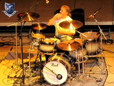 Ian Paice Győrben! Kell, hogy ennél szebben induljon a hétvége? Nem hiszem! Megérkezésünkkor még javában tartott az amúgy igen tartalmas program, bele is kukkantottunk, de a színházteremben a hőségtől levegőt sem lehetett kapni, így inkább nézelődésre, egy kis sétára és az élményre való felkészülésre fordítottuk a hátralévő időt. Az előtérben megcsodálhattuk a kiállítók által bemutatott hangszereket (egyiket-másikat ki is próbáltuk), de türelmetlenül vártuk a bejelentést, miszerint rövid szünet után a mester következik.