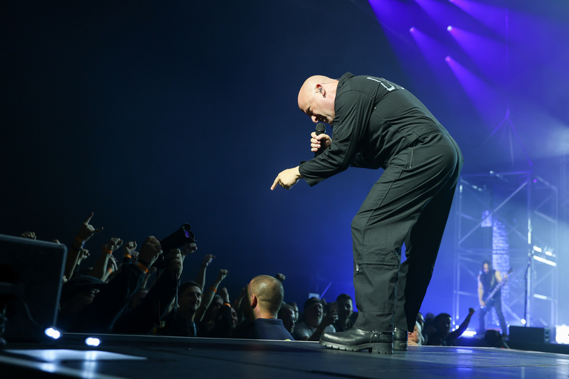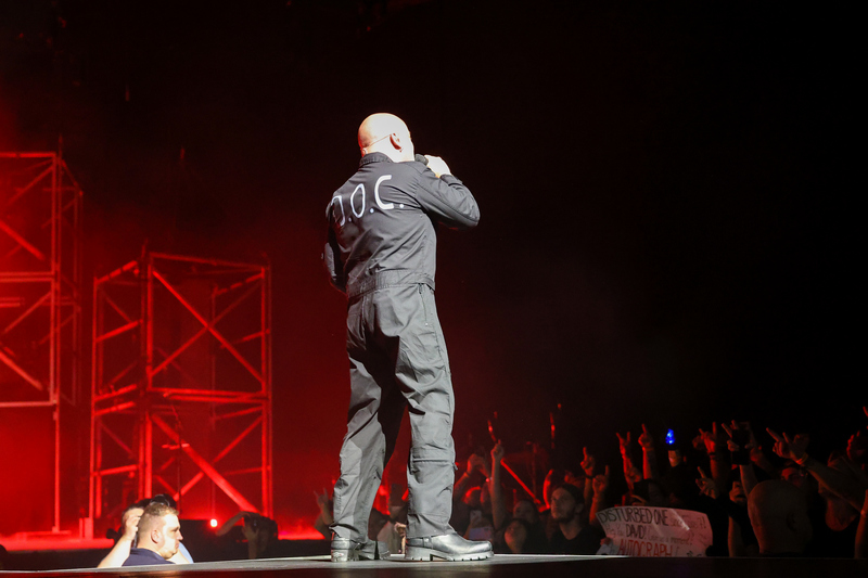 Az összesen bő kétórás koncert során minden zenész hősiesen játszotta be a hatalmas színpadi teret, azonban le kell szögeznünk, hogy David Draiman énektechnikája, hangterjedelme, frissessége páratlan. A hörgés, screamo, mély és sikító vokáltémák folyamatos váltakozásában a hangminőség fikarcnyi karcossága sem volt tapasztalható, a dalok közötti (viszonylag ritkás) felkonferálások során napmeleg hanggal beszélgetett a közönséggel.