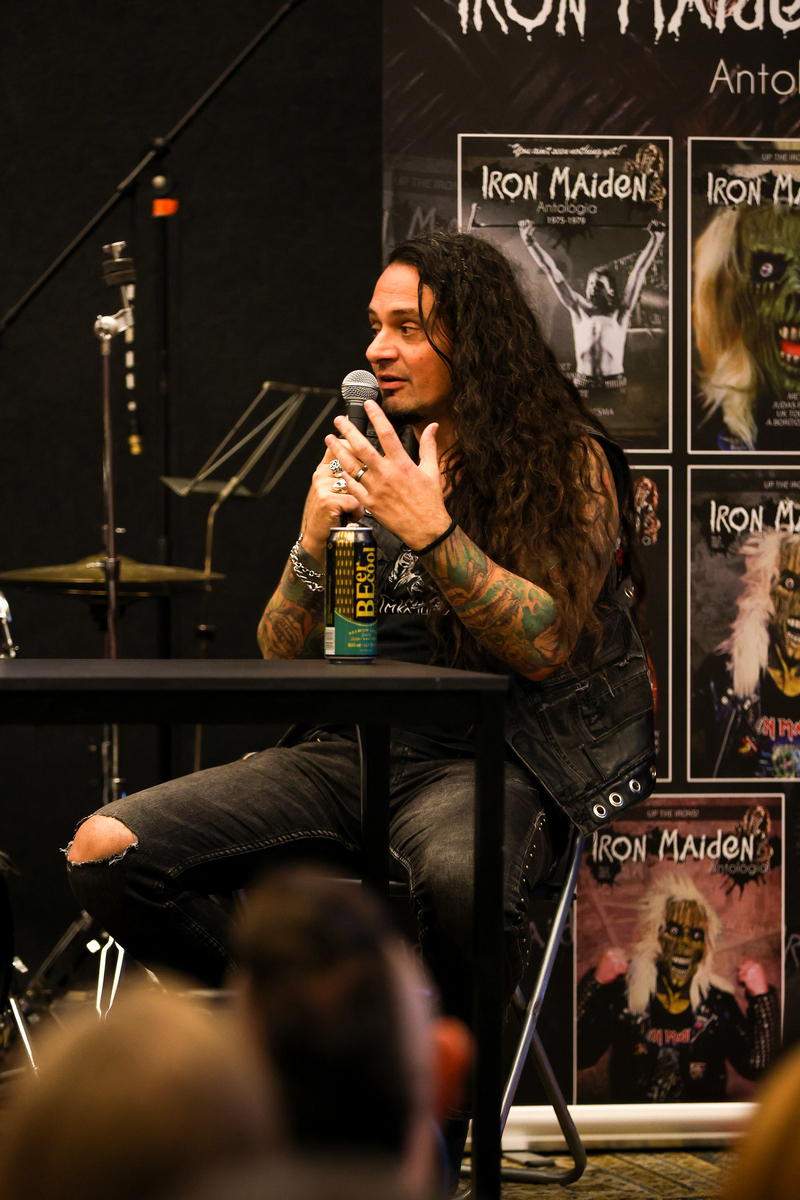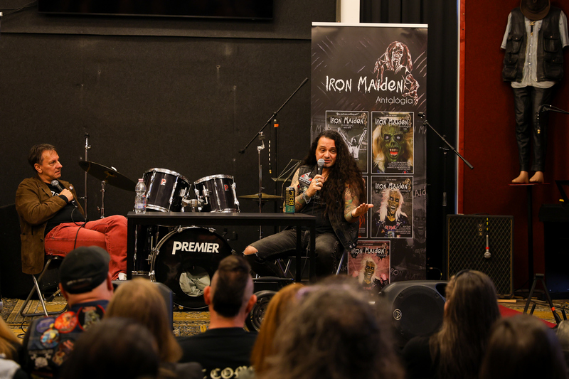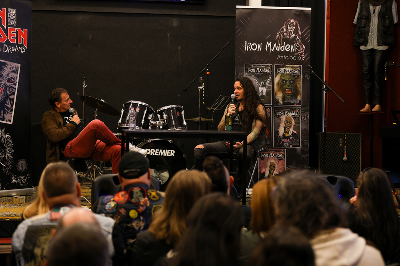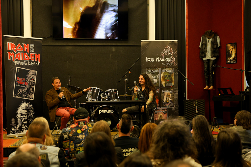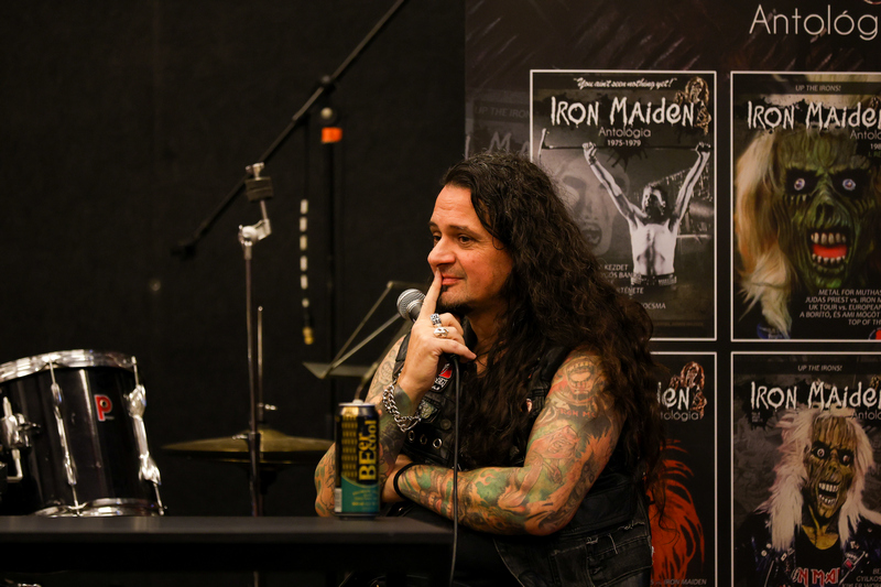 A kiállítás novemberi megnyitójára szép számmal jelentek meg érdeklődők, az esemény házigazdája Rausch Tamás volt, aki egy órán keresztül faggatta Polgár Pétert. A sok humorral átszőtt, a közönség bevonásával zajló szimpózium évtizedekre visszamenő történetekkel tarkított, interaktív beszélgetés formában zajlott. A megnyitó alatt sorra vették Péterék az együttes különböző időszakait, említésre kerültek a tagcserék, az énekesváltások, az együttest folyamatosan érintő változások, legyen szó személyi vagy a zenei környezetről. Előkerültek az alapkérdések, így megtudhattuk, hogy ha Péter csak egy lemezt választhatna, akkor az a ’Somewhere In Time’ lenne, hiszen számára ez volt a mindent elindító, ismerkedő album, így ehhez fűzik a legerősebb érzelmi szálak. Nem lepődtünk meg, hogy ezt az egy címet is csak nehezen sikerült kihúzni belőle, hiszen „ha köcsögdudán játszanának akkor is megvásárolnám a lemezüket”.