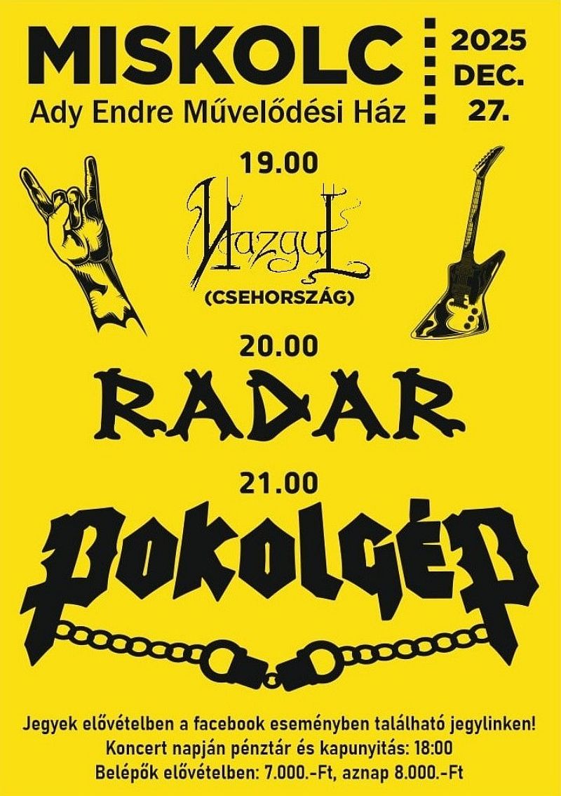 A Pokolgép a Radar és a cseh Nazgul társaságában veszi be az acélváros Ady Művházát december 27-én, nagyon fogynak a jegyek!